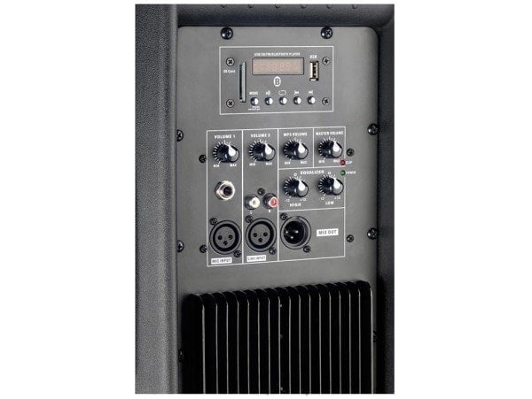 - Giriş: XLR and phone jack (microphone), XLR, phono input and auxiliary input (line), USB, SD card and Bluetooth