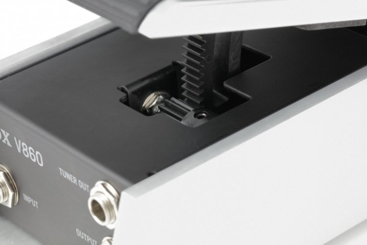 V860 gitar volume pedallarında yeni bir standart oluşturuyor. VOX'un meşhur wah pedallarının klasik görüntüsü yeniden canlanıyor. Şık alüminyum gövdesi sert ve dayanıklı olmasının yanı sıra klas bir görünüm de sağlıyor. Pedal mekanizmasının dayanıklı ve düzgün çalışması için diş sayısı yüksek dişlilere sahiptir. Herhangi bir tonal değişikliğe yer vermemek adına iç bileşenleri tamamıyla elbağlantılı (hand-wired) yapılmıştır.