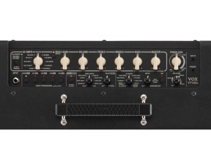 Vox Valvetronix+ serisi, 99 kullanıma hazır preseti, çok sayıda efekti ve Power Level kontrolu yanında 12AX7 vacuum tube ile gerçek tube tonu sunmaktadır.