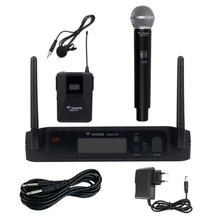 Westa WM-410H1 Telsiz Kablosuz Dijital Mikrofon Seti, kullanıcıların profesyonel iletişim ihtiyaçlarını karşılamak için tasarlanmış bir el telsiz mikrofonudur. Ürün, yüksek kaliteli ses iletimi ve kullanım kolaylığı sunarak, geniş bir kullanıcı kitlesine hitap etmektedir.